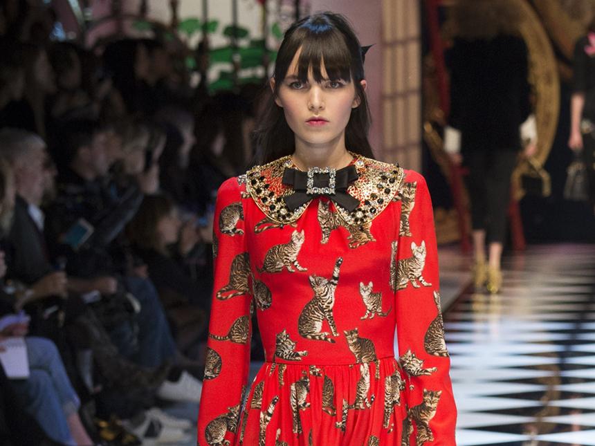 Забрались котики на платья и юбки. На них они выглядят особенно женственно и мило. Помимо Chanel, изображения кошек можно встретить в коллекции Dolce&Gabbana: они есть на эффектных платьях длиной миди, а также у Stella McCartney, которая сделала их лейтмотивом своей коллекции pre-fall 2016. У российской марки So Eas__y также есть платья с силуэтами кошечек.