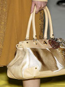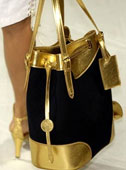 В первую очередь это небольшие изысканные сумочки, напоминающие минимализмом своей формы слиток золота. Жесткие сумки-конверты небольшого размера из кожи с золотым напылением можно увидеть сегодня в коллекциях от Gucci, Paco Rabanne, Sergio Rossi. Некоторые из них настолько оригинальны, что копируют старомодные шкатулки для драгоценностей и для придания большей жесткости выполнены из тонких металлических листов, которые обшиты парчой либо шелком с золотистыми пайетками и блестками.