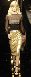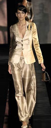 Любопытно, что очень многие вещи, в которых использован блеск золота, нынче ориентированы на очень высокие сферы. В современных вещах прослеживается явное подражание изображениям древнеегипетским или древнегреческим богам. Статуи египетских богов или фараонов, дошедшие до наших времен, были окутаны как раз в одеяния из сияющей золотой парчи, очень похожие на модели, предложенные Louis Vuitton, Emilio Pucci, Loewe, а массивные украшения от Krizia с напылением под старое серебро и золото явно позаимствованы у вольнолюбивых греческих богов.