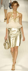И если вы все равно относитесь к этому предложению ведущих Домов моды с подозрением, подумайте об особенностях нынешнего лета. Ведь золото прекрасно сочетается с главными цветовыми предпочтениями сезона – белым, черным, бежевым. Более того, одежда и аксессуары с золотым напылением идеально сочетаются с гладкой здоровой загорелой кожей. Так что нынешним летом сам бог велел нам щеголять золотым блеском и ослеплять им своих поклонников.