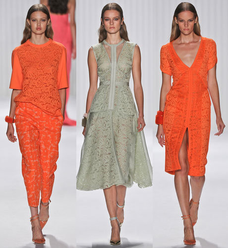 В сезоне весна-лето 2013 дизайнеры предлагают кружевные платья актуальных оттенков сезона — мятного, лавандового, бананового, персикового, кораллового, нежно-розового.