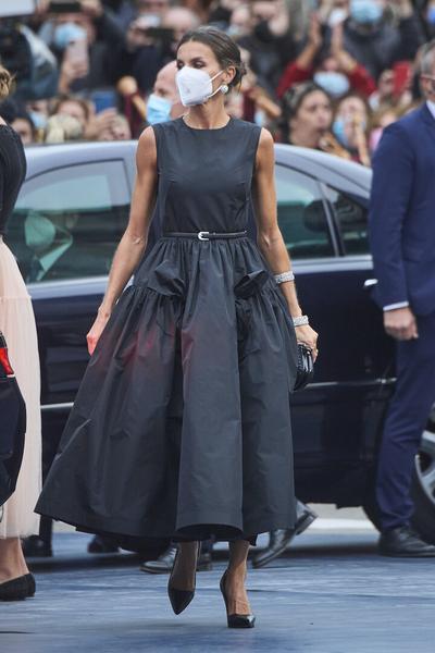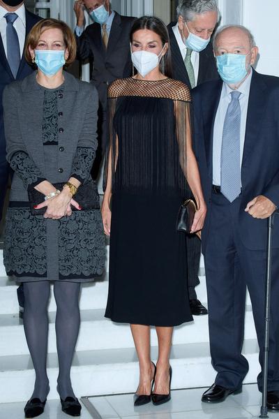 Образы королевы из 2010-х годов сейчас кажутся странными, хотя тогда она была на гребне модной волны. Уверены — все помнят кардиганы из тонкого трикотажа, которые носили в паре с приталенными бланковыми рубашками и платьями-футлярами. Аутфит Летиции эта деталь заметно подпортила, но она быстро это поняла: для последующих выходов платье с рентген-принтом монаршая особа рифмовала с жакетом.