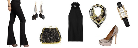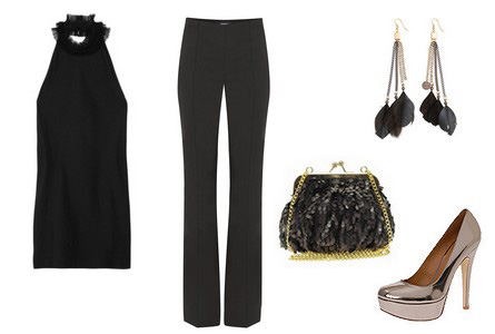 Черные брюки-клеш идеально подойдут для вечера. Хорошо, если они будут из блестящего атласа, но даже обычные из плотного хлопка или ткани-стрейч со стрелками вполне сгодятся. Если вам предстоит коктейльная вечеринка, светское мероприятие или встреча с друзьями в клубе, просто выбирайте подходящий верх. На выручку вам придут шелковые топы с американской проймой и воротником-гольф, а также топы, расшитые пайетками.