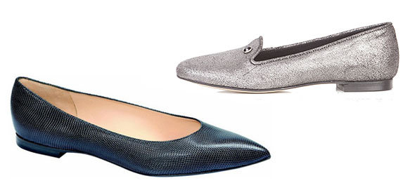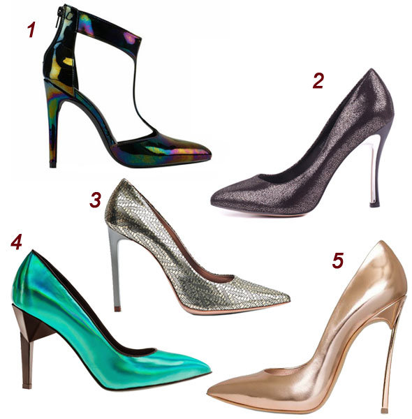 Хит сезона – туфли цвета металлик, а также золотого и серебряного цветов. Такие туфли отлично сочетаются с другими цветами, как и черные, но выглядят более празднично. Кстати, балетки или лоферы в модном оттенке будут также уместны.