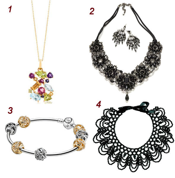 1 - подвеска Tous, 2 - комплект Benetton, 3 - браслет Pandora, 4 - колье Intimissimi