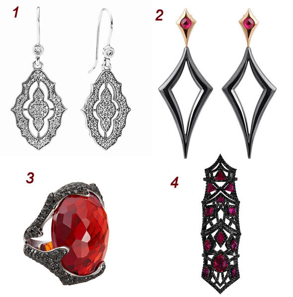 1 - серьги Pandora, 2 - серьги Monza, 3 - кольцо Monza, 4 - кольцо-корсет KoJewelry